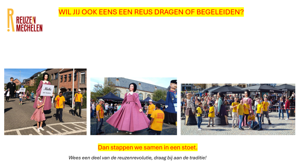 Contacteer ons voor meer info via reuzenmechelen@gmail.com